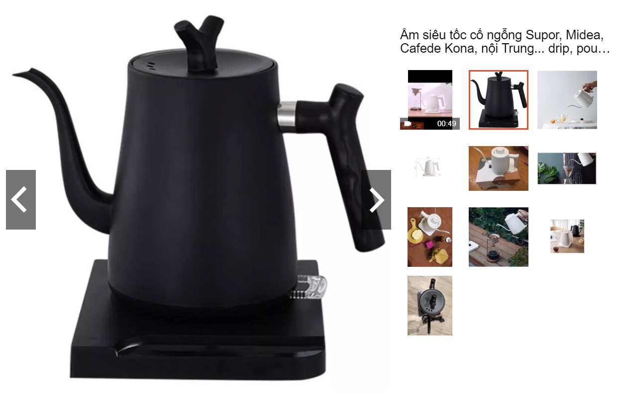Ấm siêu tốc cổ ngỗng Supor, Midea, Cafede Kona, nội Trung… drip, pour over, brew V60 cà phê